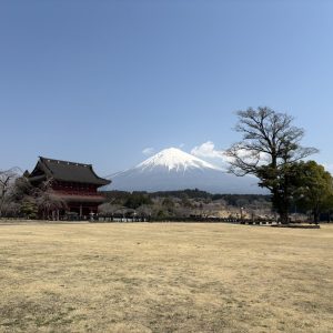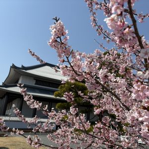 3月写真レポート 2025/03/25 3月23日支部登山の添乗で大石寺へ 1週間前の3月16日の連合会総会の当日は 大雨の天候でしたが、この日は快晴の天気でした 奉安堂駐車場に1本の桜の木があり 満開でした 「桜と奉安堂」 が入るように撮影しました